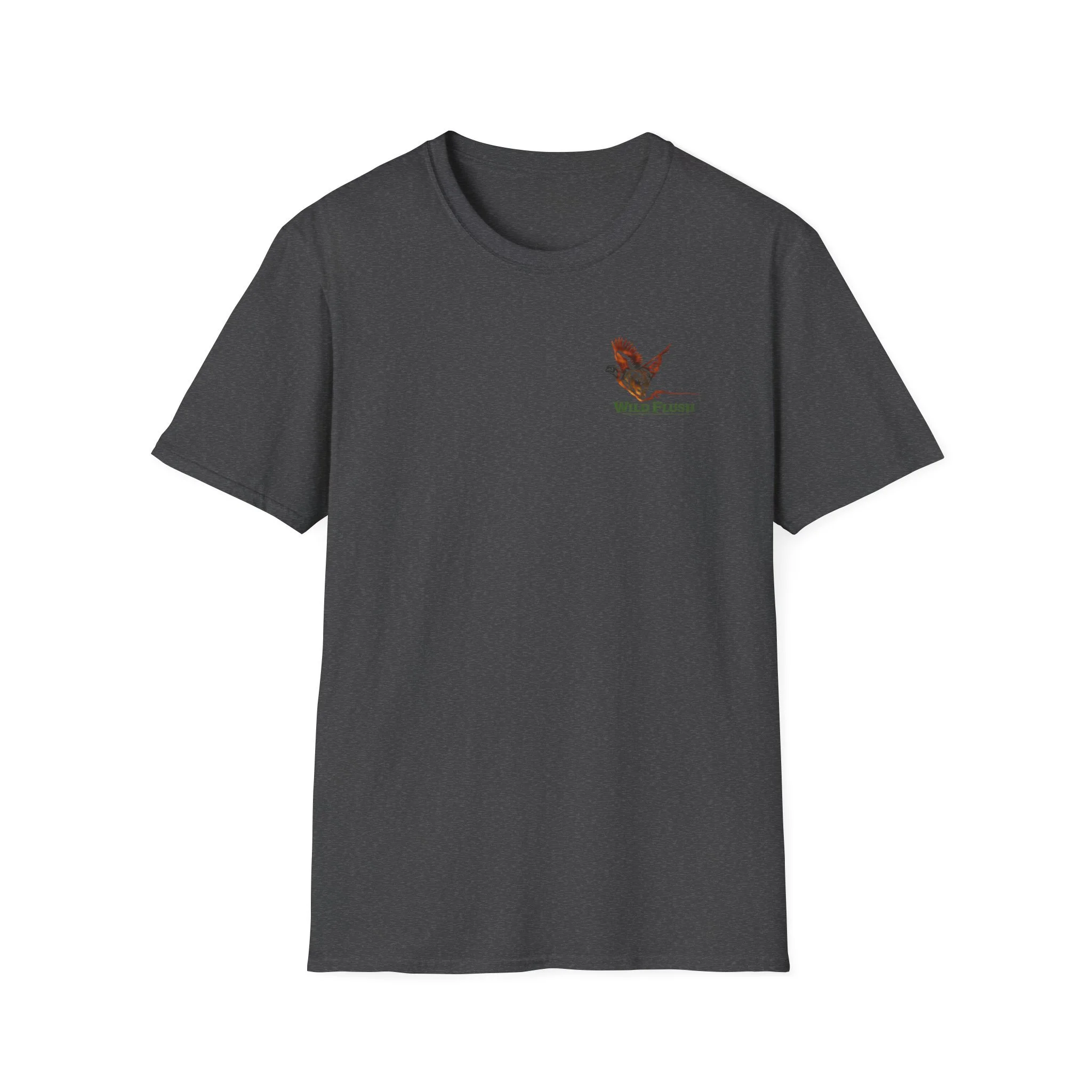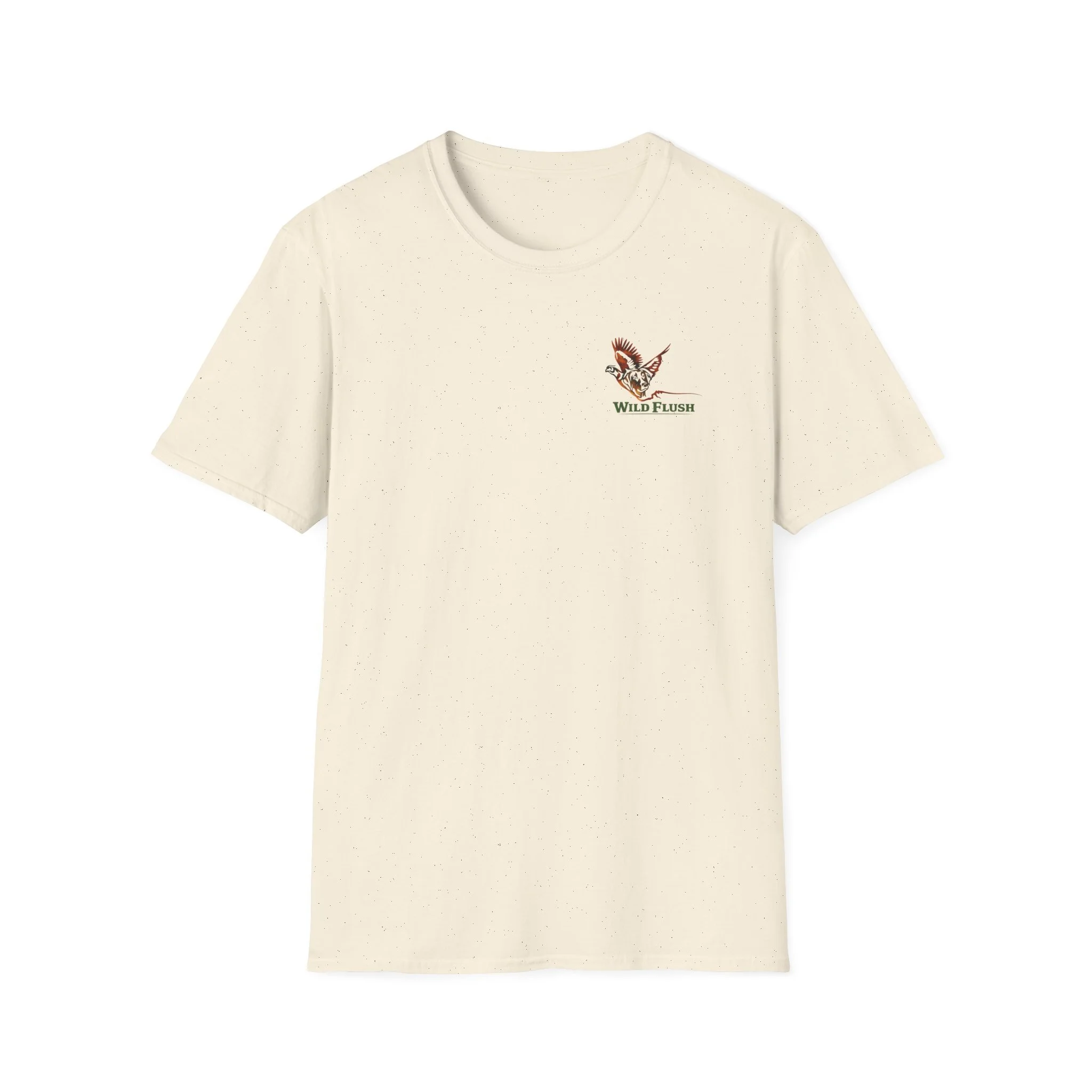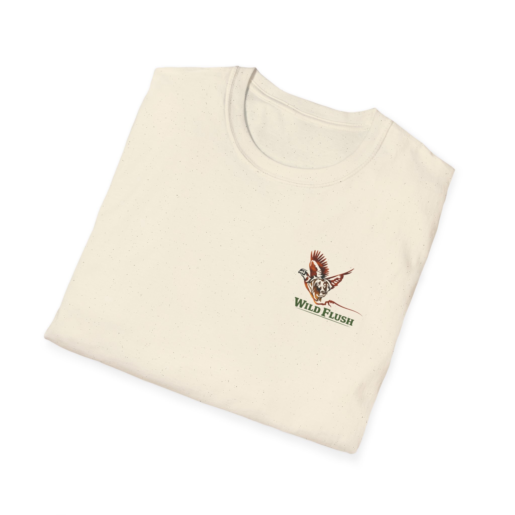 A soft, easy-wearing tee with vintage hunting vibes and small, thoughtful details. The front carries a subtle chest emblem while the back shows a warm, nostalgic illustration of a hunting dog holding a bird with the words “Less Leg More Heart.” It feels like the kind of shirt you reach for on slow mornings after a long weekend outdoors — worn in around the shoulders, breathable in sun and shade, and quiet enough to layer under a flannel for cool evenings. The lightweight ring-spun cotton keeps the print crisp and the silhouette unforced, so the artwork and message can do the talking without shouting.