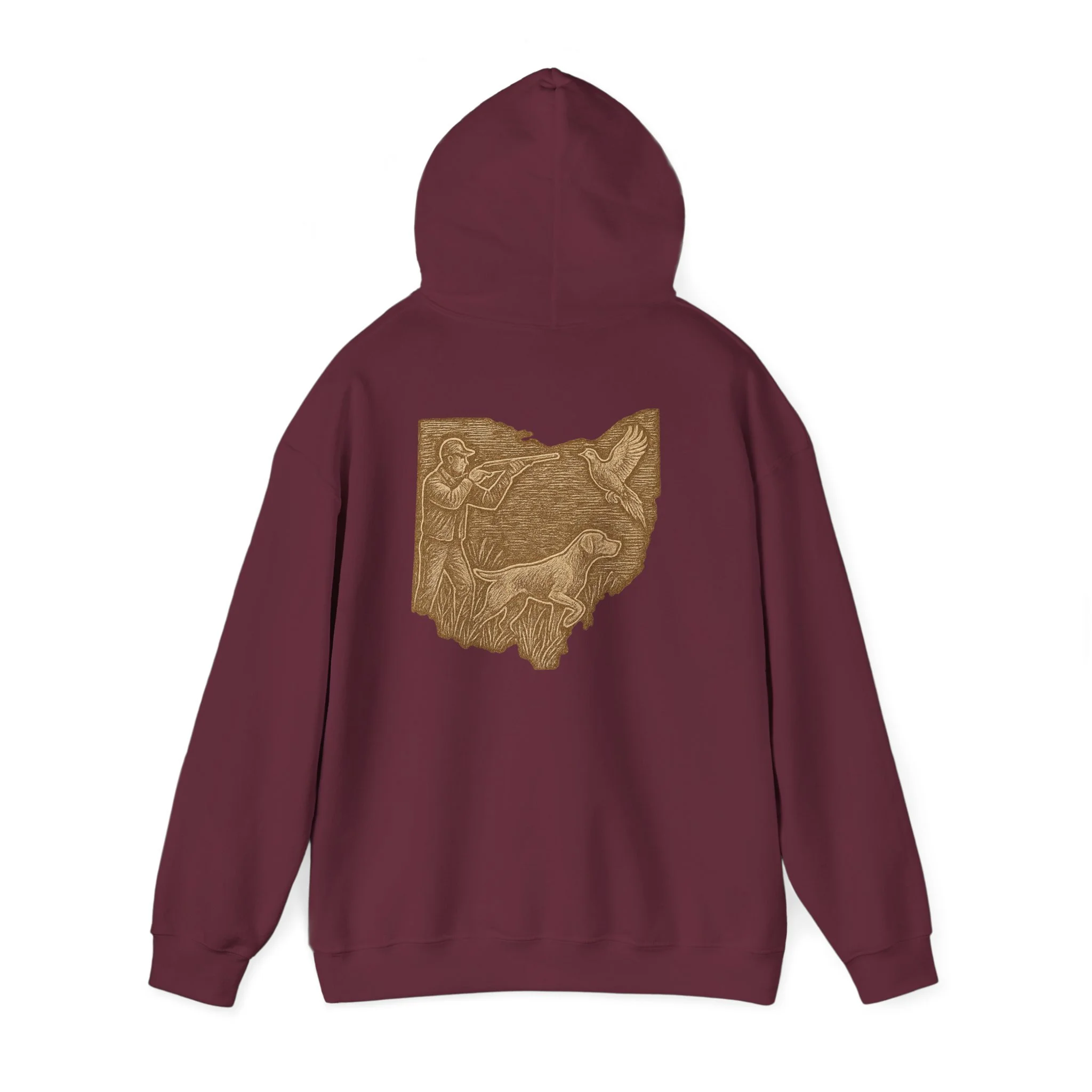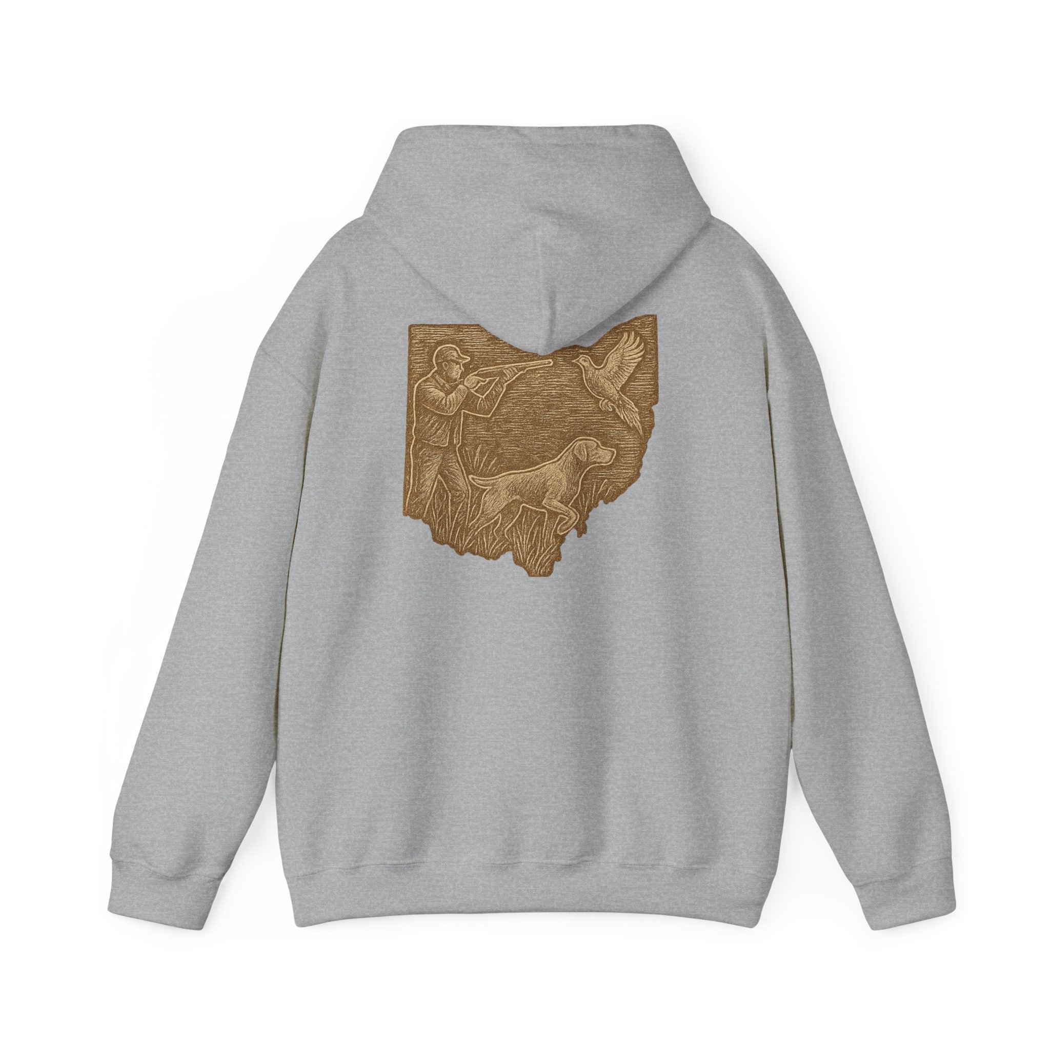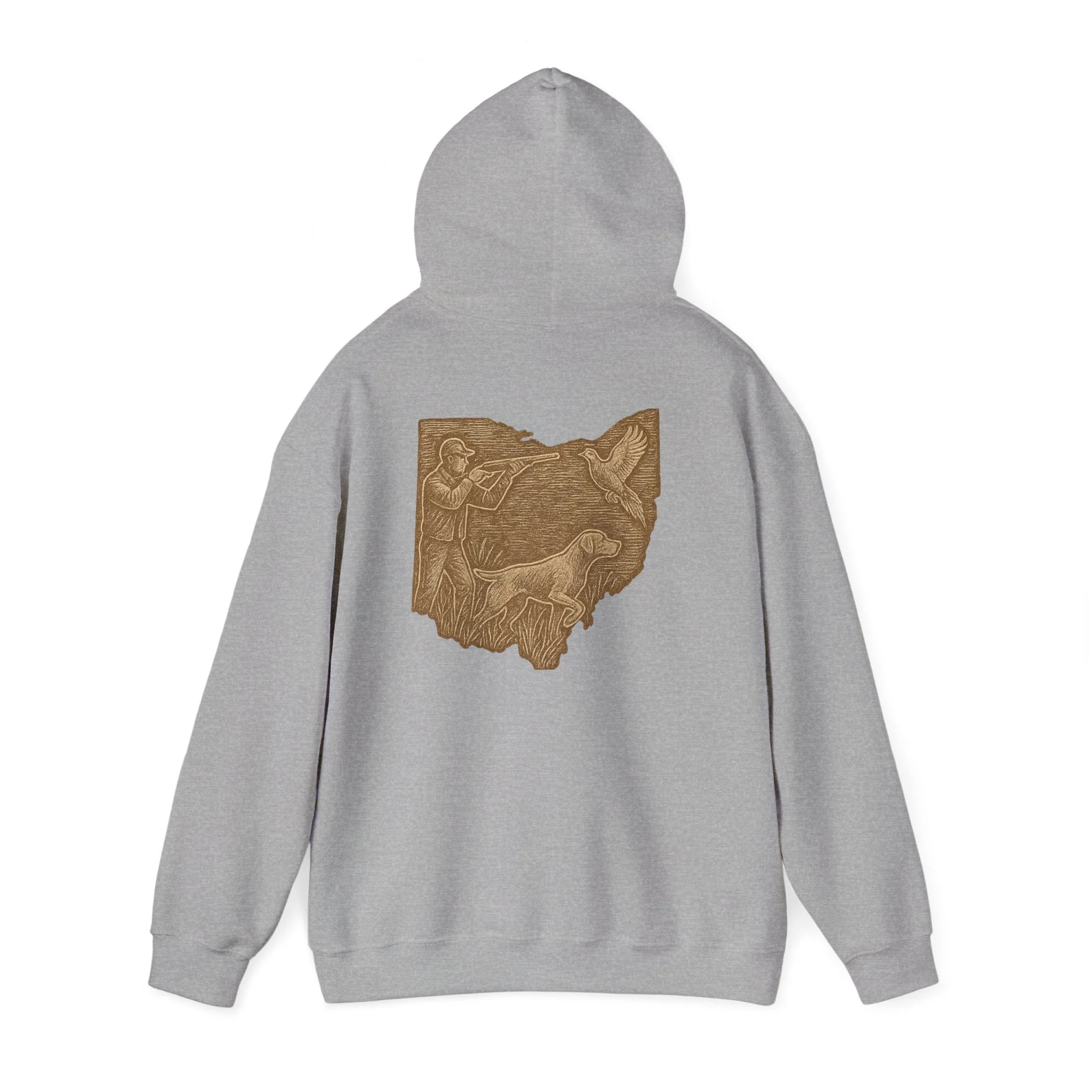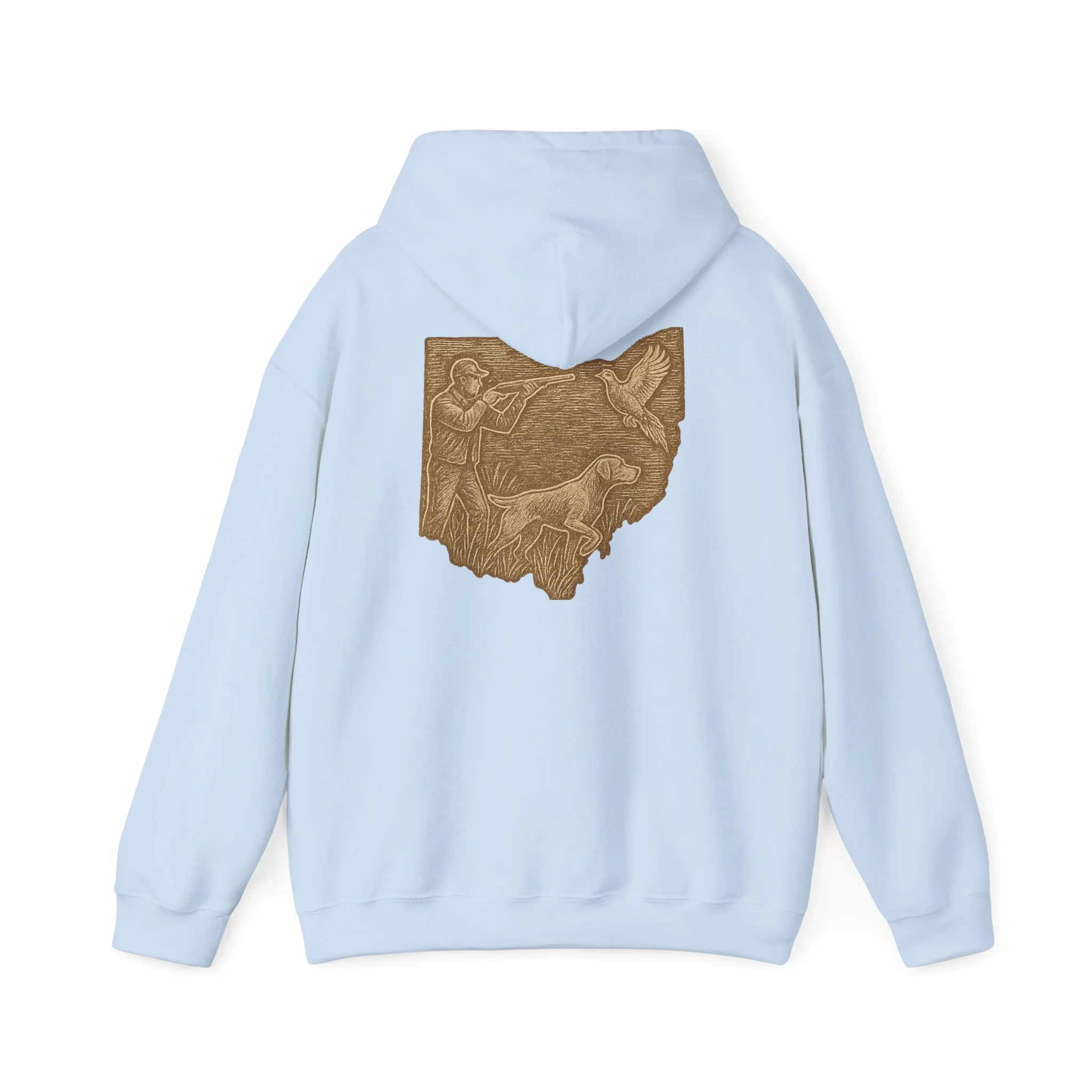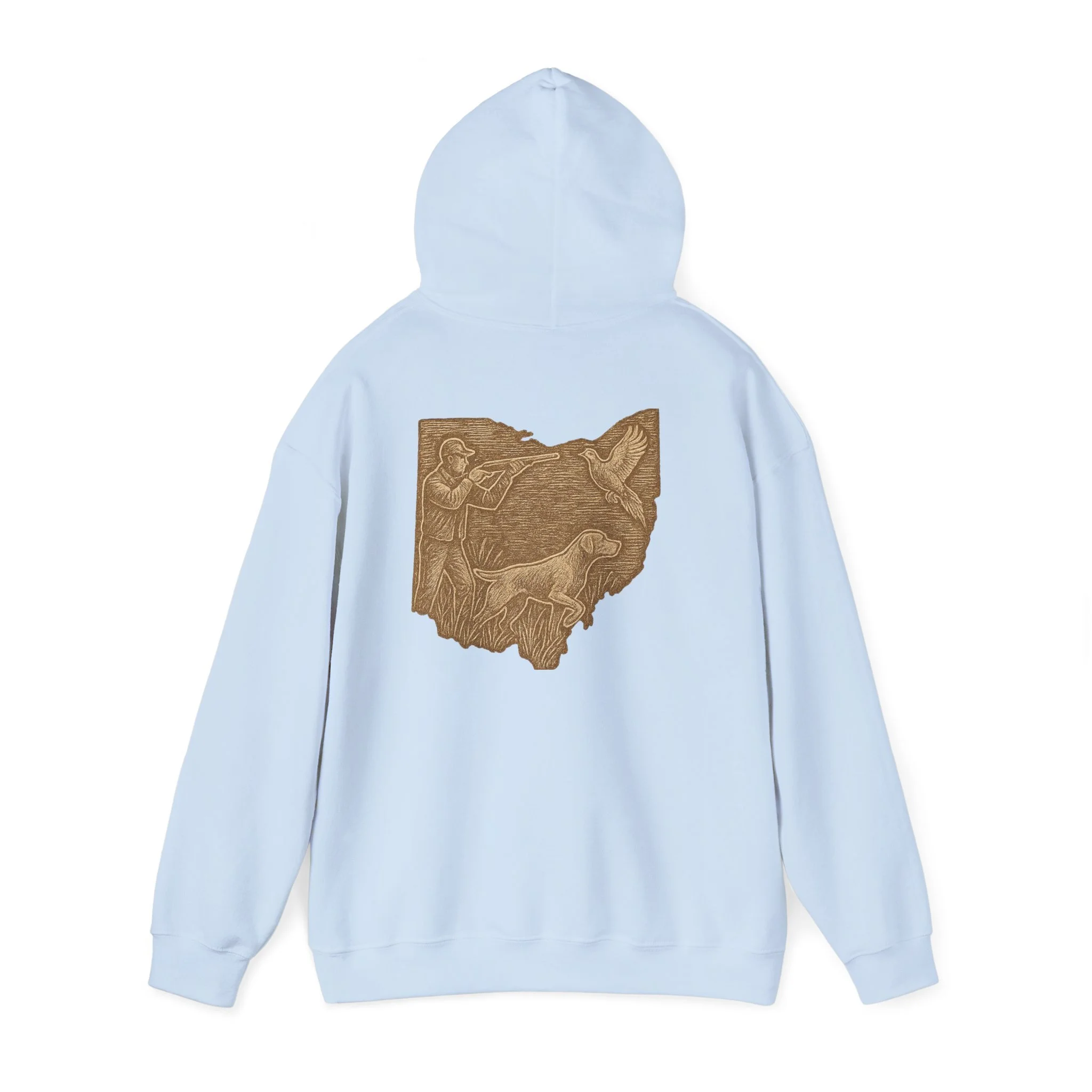 This cozy hoodie carries a quiet, handcrafted vibe — soft, warm, and ready to become the one you reach for on slow mornings or long drives. The design on the back is etched in warm, sepia tones that feel like a pressed memory: a detailed scene printed in a single-color palette that sits inside the silhouette of Ohio. It reads like a personal emblem — familiar, grounded, and slightly nostalgic. The roomy kangaroo pocket and double-lined hood invite you to linger outside with a coffee or curl up on the couch with a book. Durable fabric and careful construction mean the print sits beautifully on the surface, while embroidery and DTF print options let you dial in extra texture and detail if you want a more tactile finish. Wear it to hometown gatherings, low-key meetups, or while exploring local trails — it fits seamlessly into quiet routines and the small rituals of everyday life.
