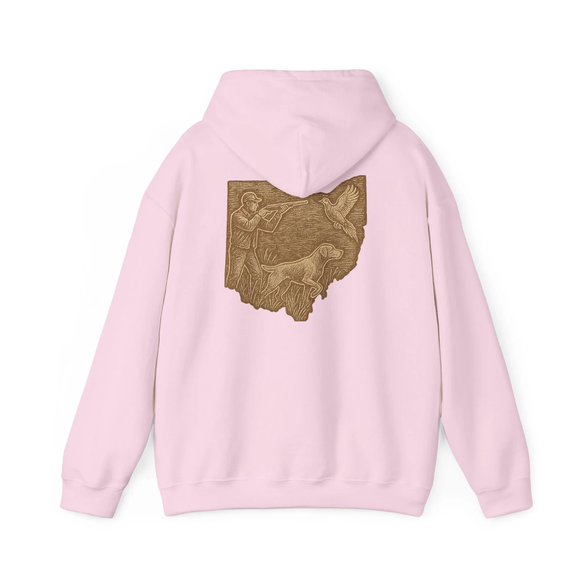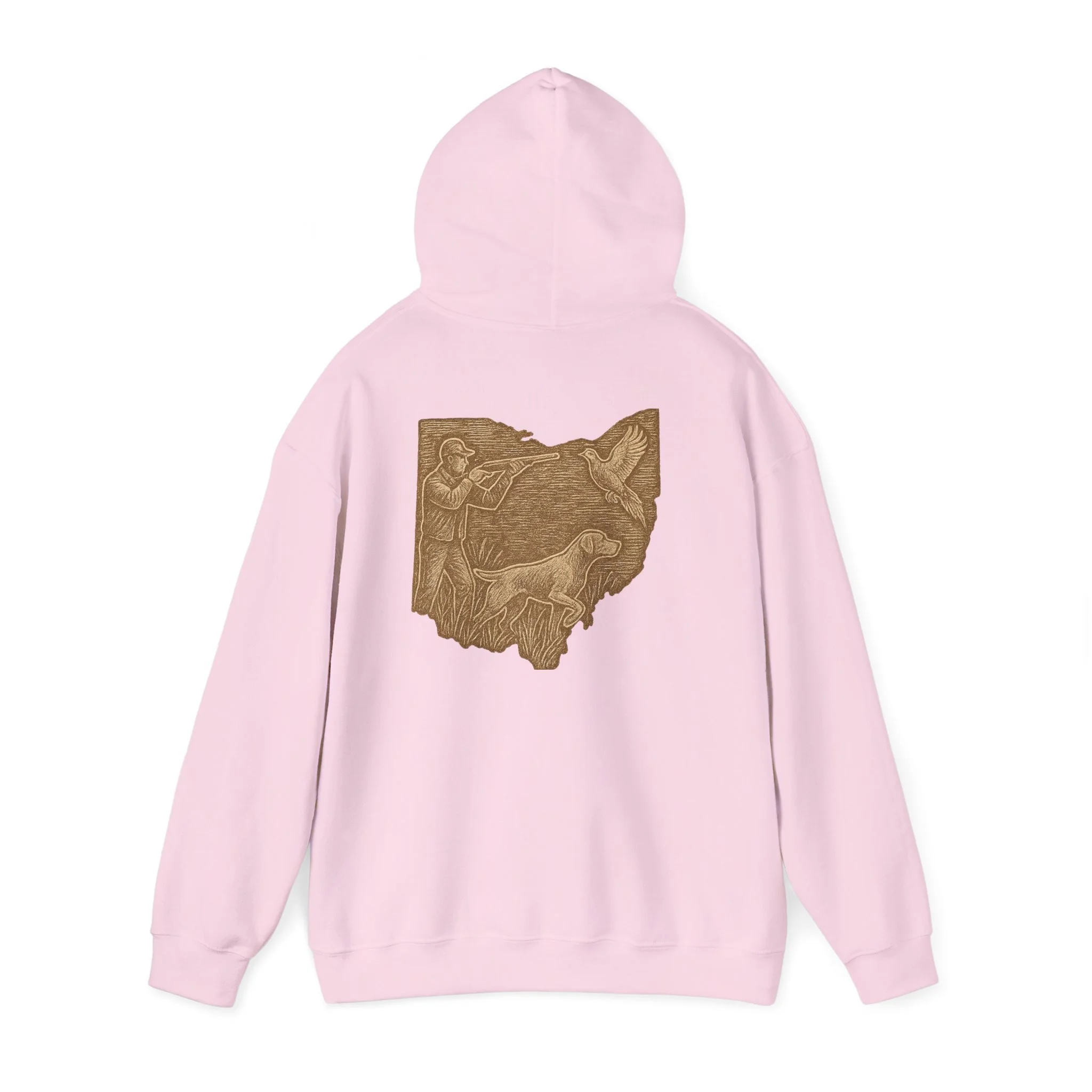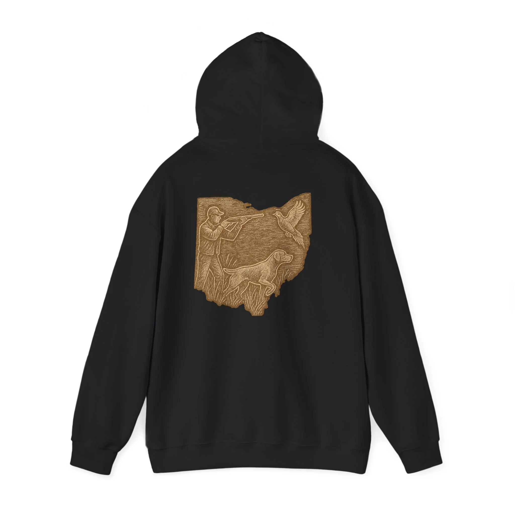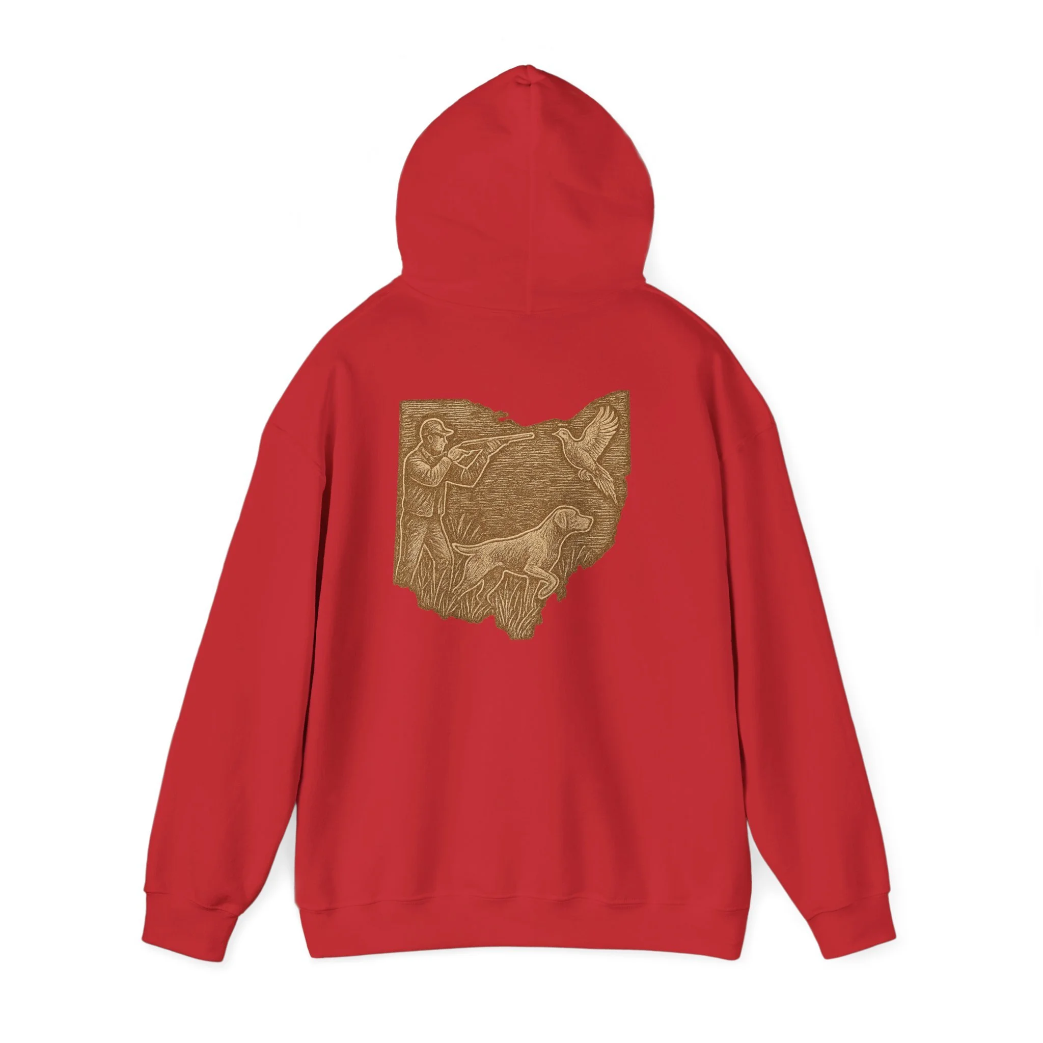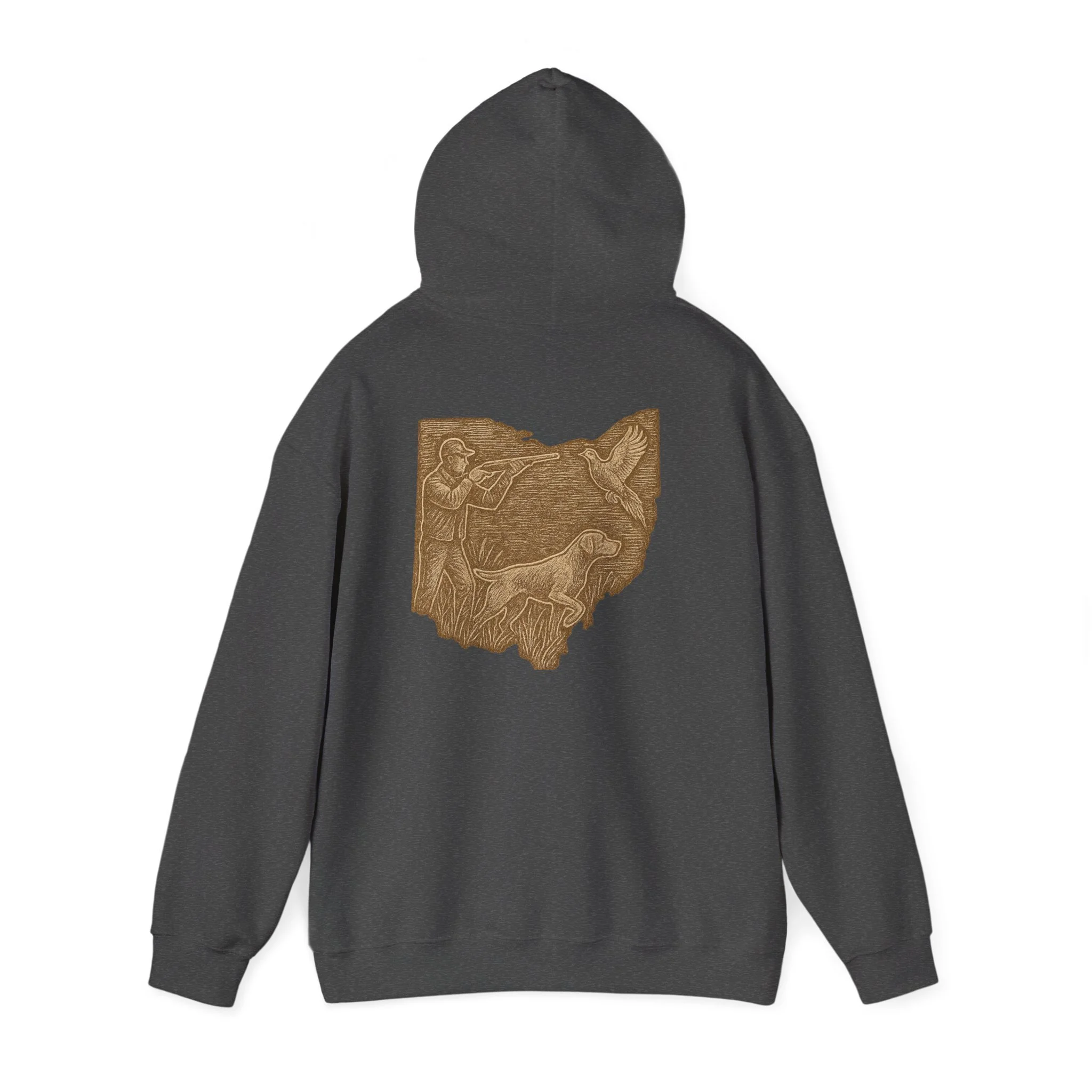 This cozy hoodie carries a quiet, handcrafted vibe — soft, warm, and ready to become the one you reach for on slow mornings or long drives. The design on the back is etched in warm, sepia tones that feel like a pressed memory: a detailed scene printed in a single-color palette that sits inside the silhouette of Ohio. It reads like a personal emblem — familiar, grounded, and slightly nostalgic. The roomy kangaroo pocket and double-lined hood invite you to linger outside with a coffee or curl up on the couch with a book. Durable fabric and careful construction mean the print sits beautifully on the surface, while embroidery and DTF print options let you dial in extra texture and detail if you want a more tactile finish. Wear it to hometown gatherings, low-key meetups, or while exploring local trails — it fits seamlessly into quiet routines and the small rituals of everyday life.